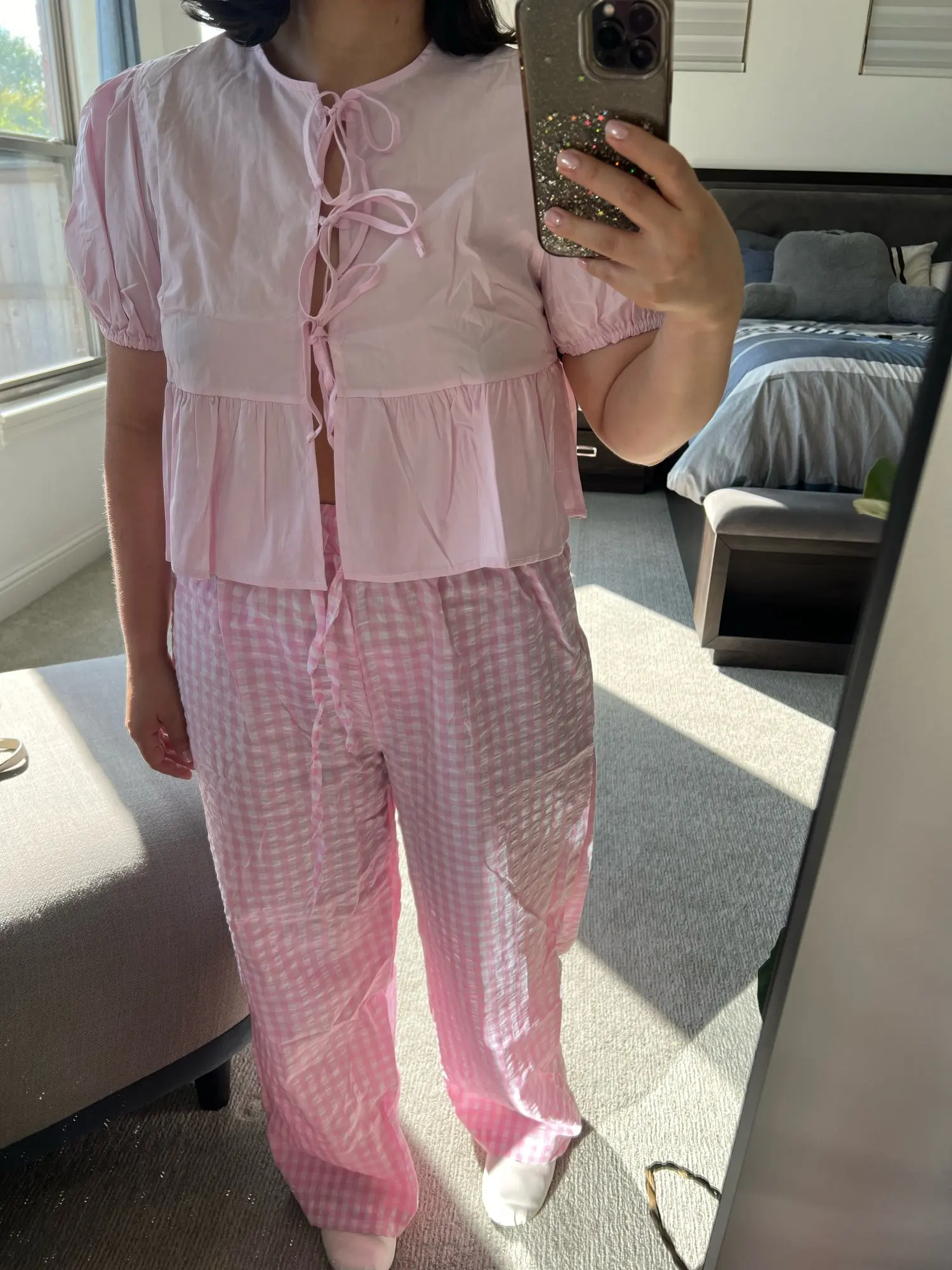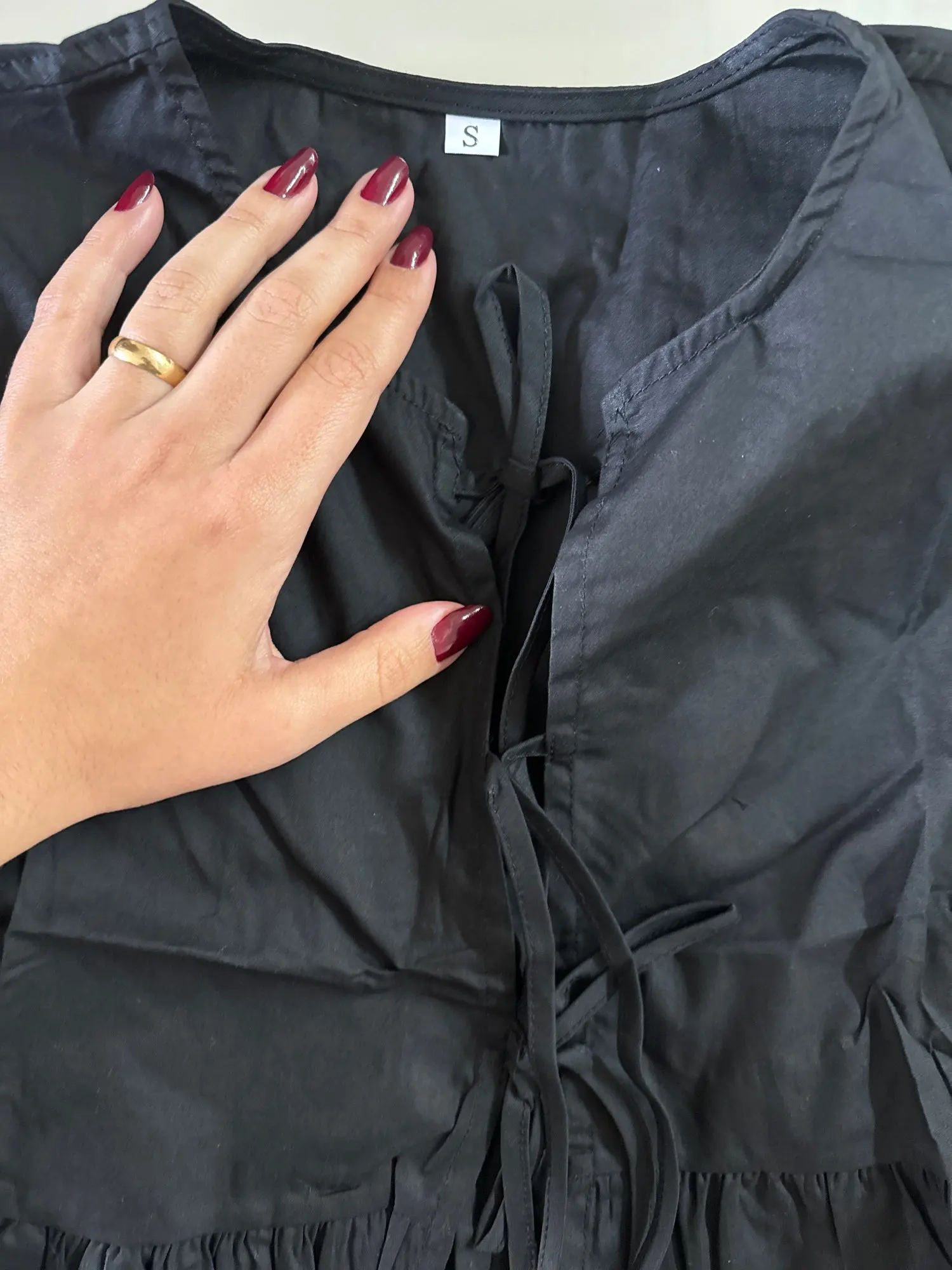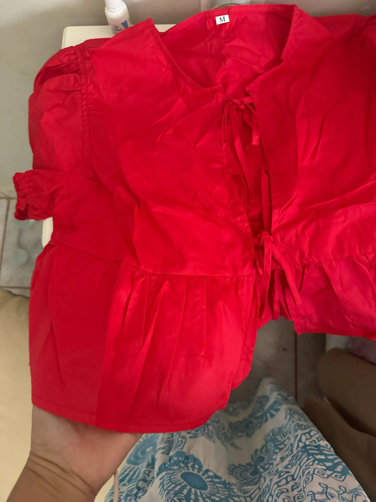 I ordered for the width of the waist and not for the length of the blouse. She's very beautiful, but she got short because my chest is big. I should have asked for L. But she's very broad, loose. It's only short.