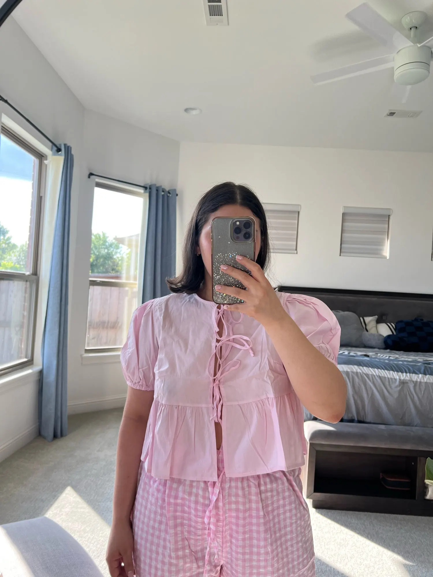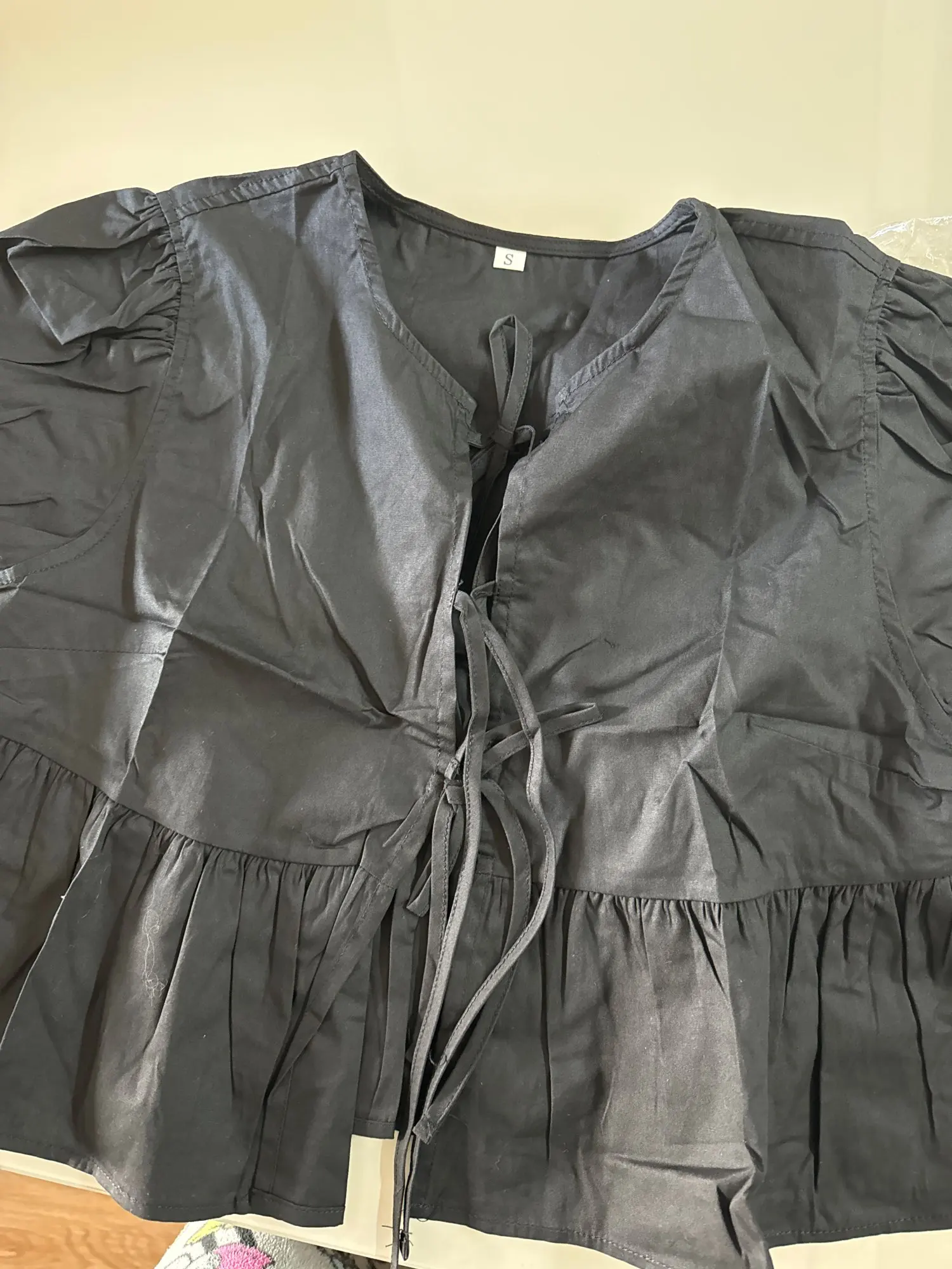 Chic & Elegant Puff Sleeve Blouse Elevate your spring and summer wardrobe with our Chic Puff Sleeve Blouse. Crafted with a slim fit and elegant lace-up neckline, this cropped top combines sophistication with a playful ruffle design. The puff sleeves add a touch of vintage charm, while the breathable fabric ensures comfort throughout the day. Perfect for pairing with high-waisted skirts or jeans for a stylish look.